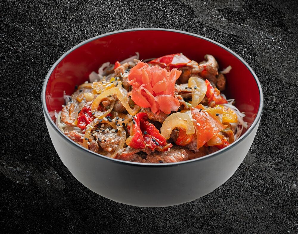 Говядина, лук репчатый, болгарский перец, капуста, рис, имбирь.