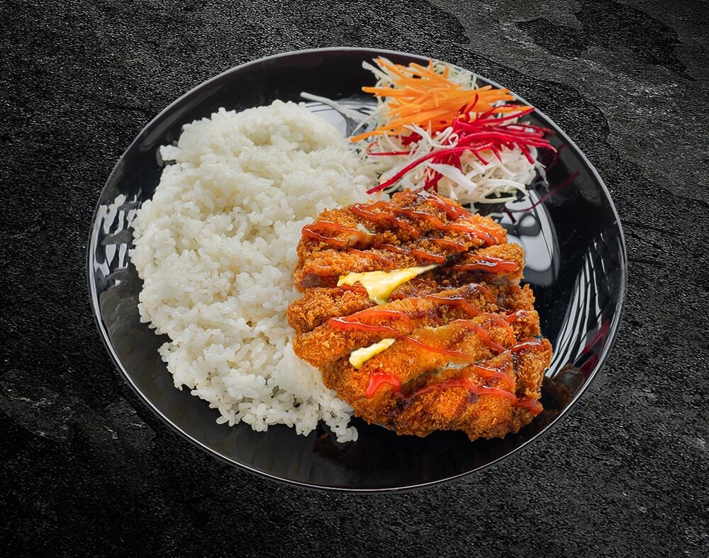 Свинина в панировке, сыр "Моцарелла", рис, салат "Кацу"