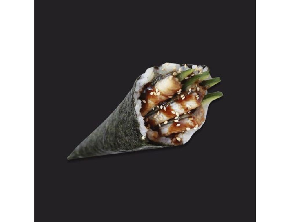 Угорь, рис, нори, огурец, тобико, сыр творожный, унаги соус.