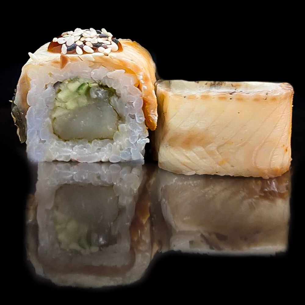 Рис, креветка, угорь, огурец, сыр творожный, унаги соус