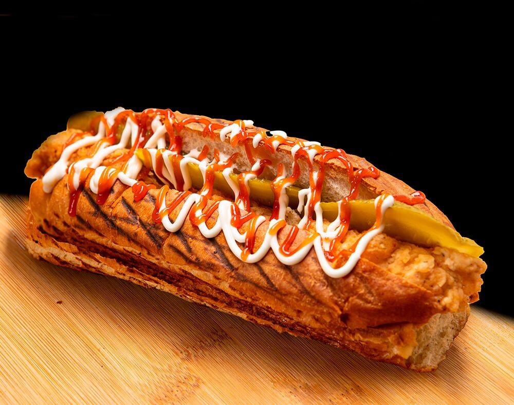 Булка, филе куриное, майонез, халапеньо, огурец, чили.