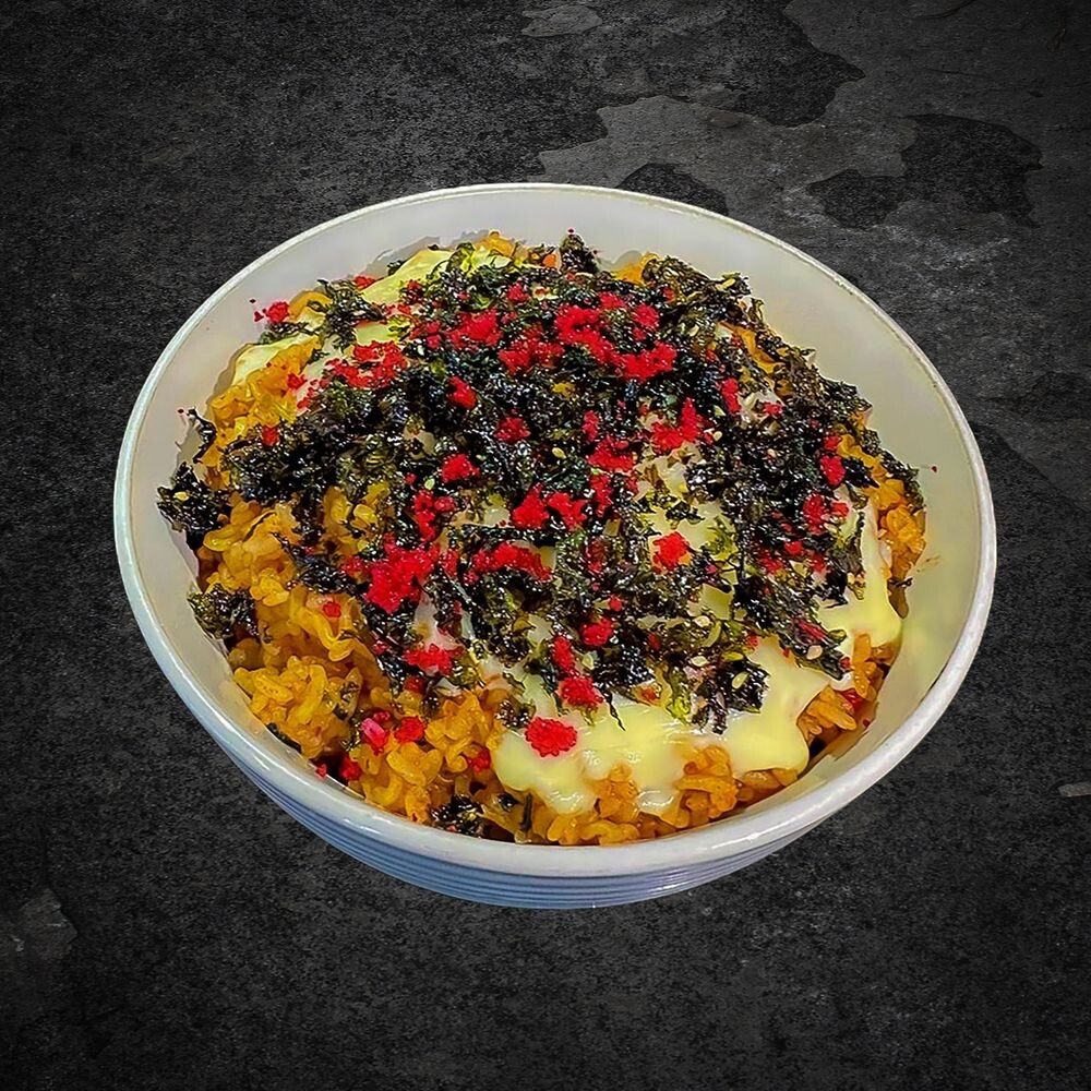 Лапша рамён, рис, сыр моцарелла, морская капуста, Тобико, соус острый