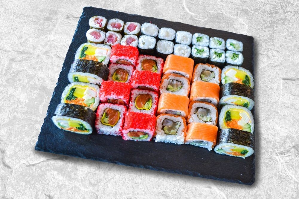 Маки с огурцом, Маки с тунцом, Маки с гребешком, Калифорния с лососем, Трюфельный лосось, Биг ролл с краб палочкой